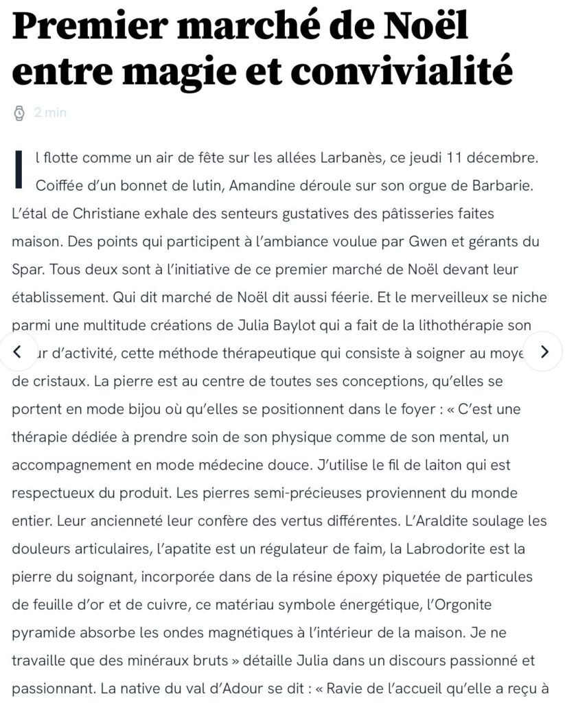 Article de presse Nouvelle République des Pyrénées du 19/12/2024 -Auteur,photo : F.Abadie
