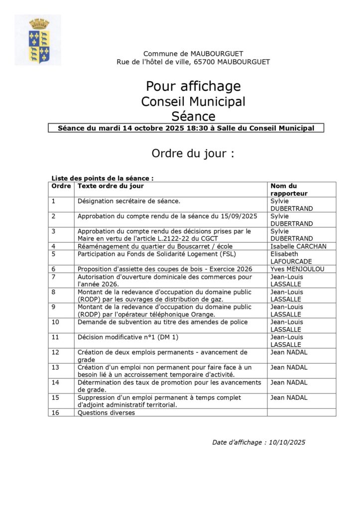 Prochain Conseil municipal le 14/10/2025 à 18h30 https://www.maubourguet.fr/conseil-municipal-4/