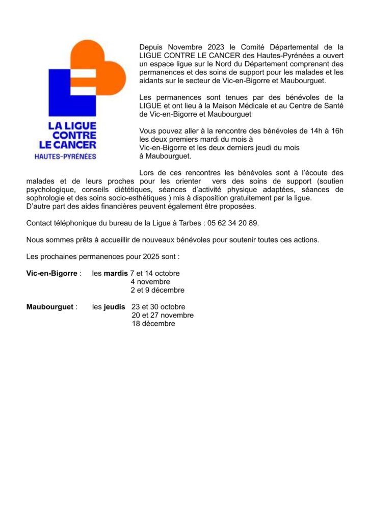Renseignements au bureau de la Ligue à Tarbes : 05 62 34 20 89